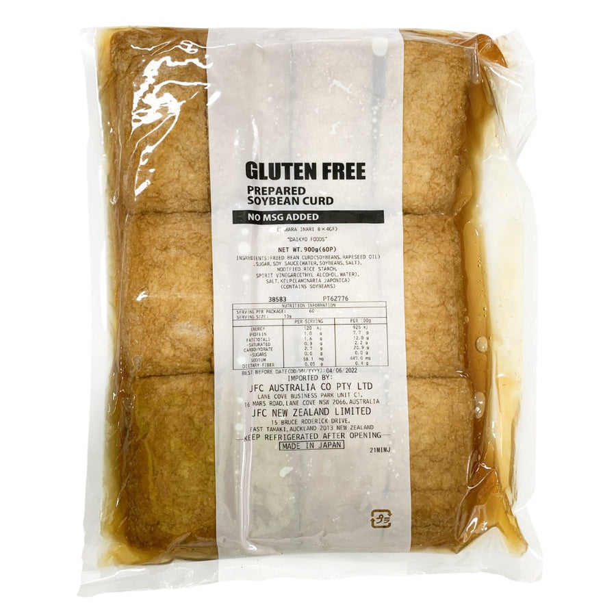 INGREDIENTS:FRIED BEAN CURD(SOYBEANS,RAPESEED OIL,FIRMING AGENT(511)),WATER,SUGAR,SOY SAUCE(WATER,SOYBEANS,SALT),RICE STARCH,VINEGAR,SALT,KELP(LAMINARIA JAPONICA).
