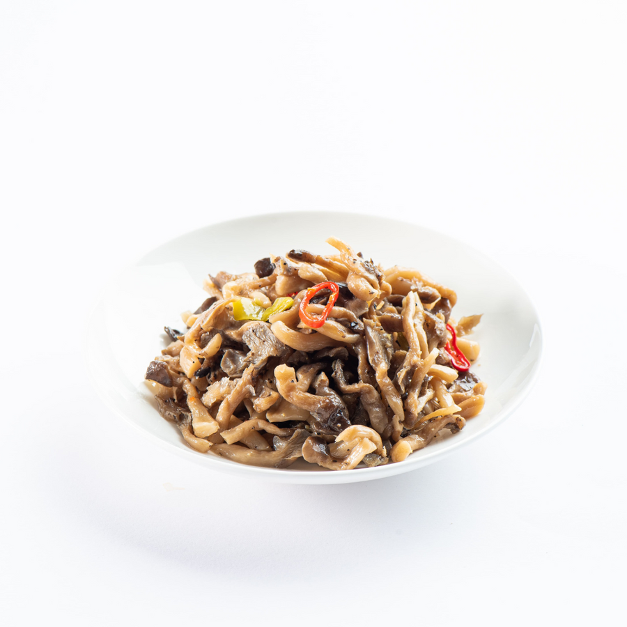 INGREDIENTS:MUSHROOM,SCALLION OIL(SOY OIL,SCALLION),HIGH FRUCTOSE CORNSYRUP,RED CHILI PEPPER,SALT,GREEN PEPPER,HYDROLYSED PROTEIN(WATER,SOY),SOY SAUCE(WATER,SOY,WHEAT,SALT),FLAVOUR ENHANCER(621),ALCOHOL,BLACK PEPPER(0.26%),ANTIOXIDANT(300),FLAVOUR ENHANCER(631,627).